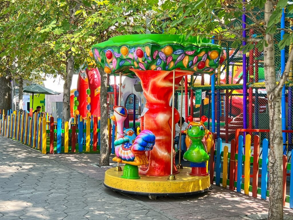 At the top of Kok Tepe is a small theme park with individually priced rides and games, including a Ferris wheel, some colorful kiddie rides…