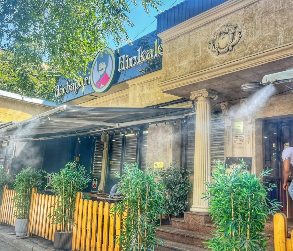 Arriving to lunch at the Khinkali House. Yes, we realize it’s a bit lame that our first (and only!) meal out in Kazakhstan was Georgian. But it was a special occasion, and we were so ecstatic to learn that this cuisine is everywhere in Almaty!