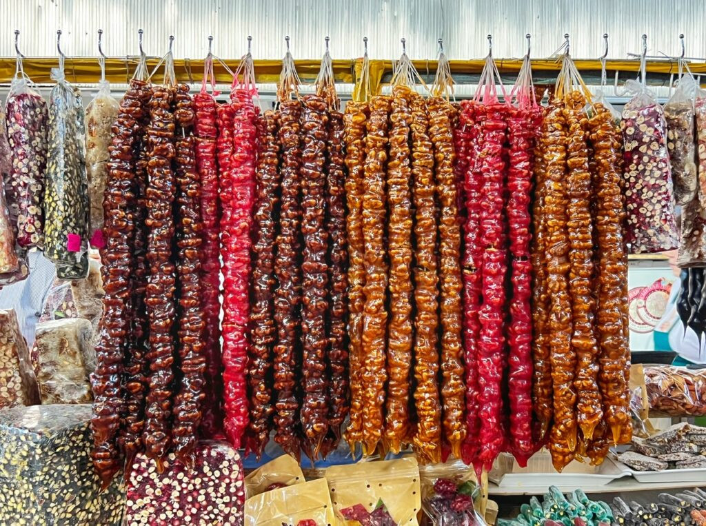 However, we couldn’t resist a piece of the treat we know as Churchkella, or “Georgian Snickers,” which is walnuts dipped in thickened grape juice which dries into a healthy and chewy sausage-resembling snacks. Yum!