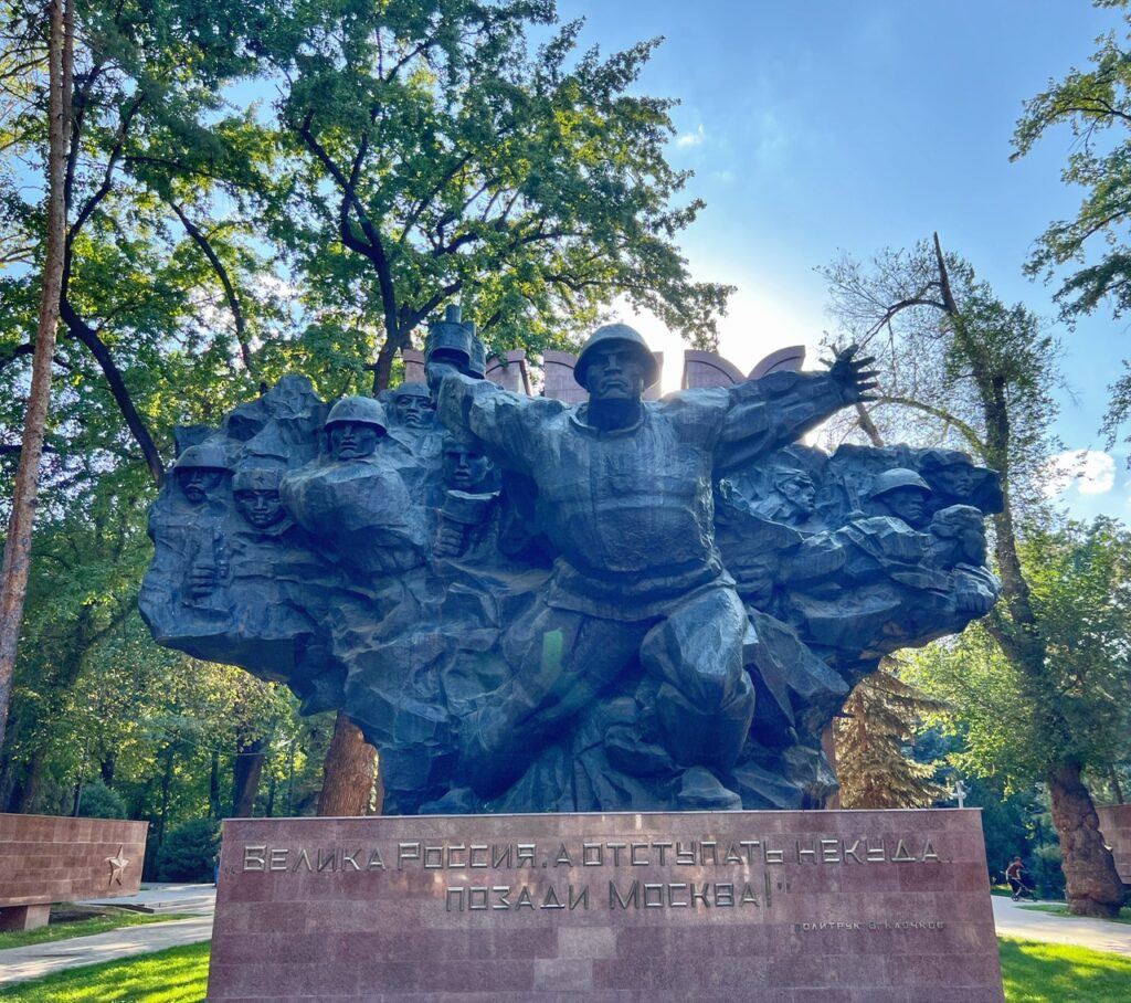 The Glory Memorial in the Park of 28 Panfilov Guardsmen is one of Almaty’s most important World War II monuments. Its shape represents the Soviet Union and the 15 soldiers bursting forward together, symbolize the 15 Soviet republics united against Nazi Germany.