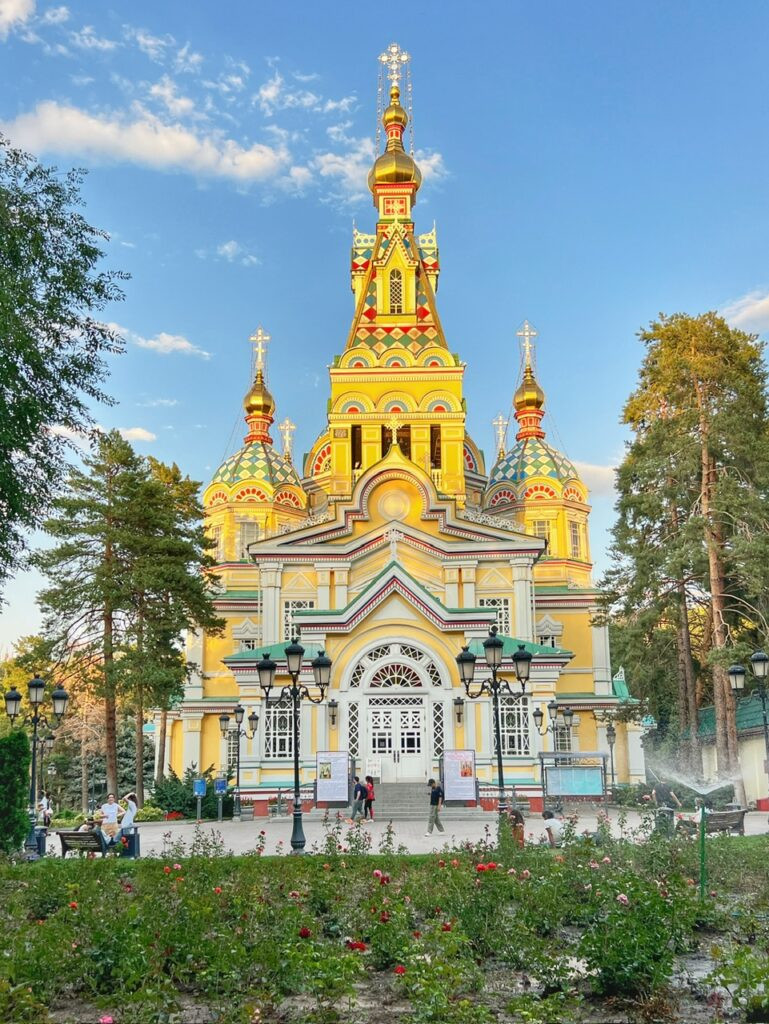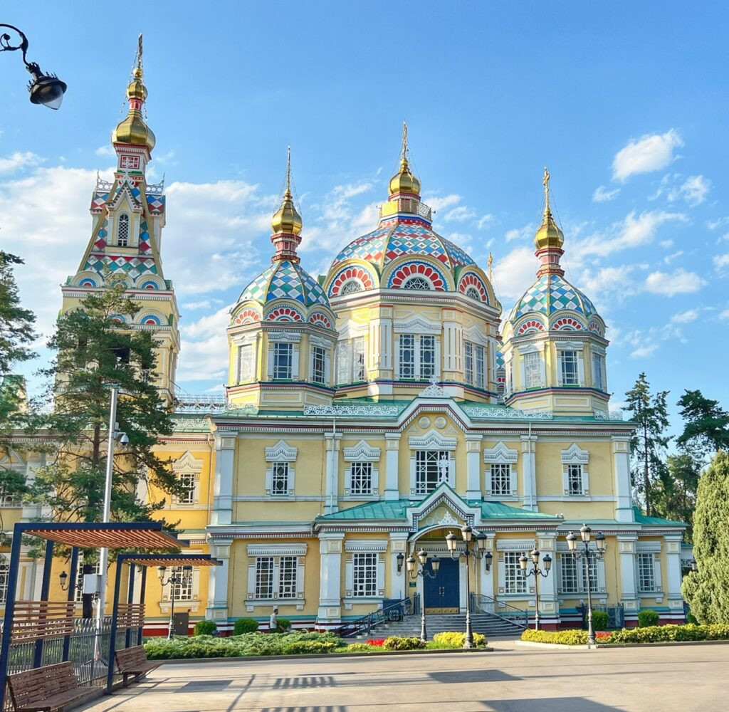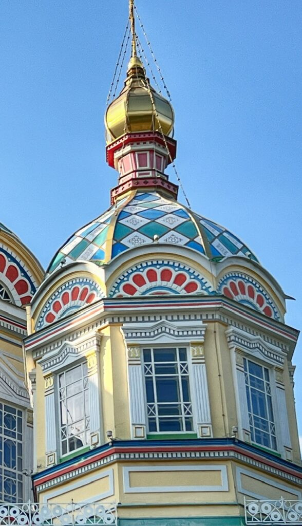 Later in the day, we visited our first Russian Orthodox Cathedral, dating from 1907, which is named Zenkov Cathedral and is at the heart of Almaty’s lush Panilov Park. Russia occupied Kazakhstan for nearly 300 years and they acquired their independence in 1991 after the fall of the Berlin Wall.