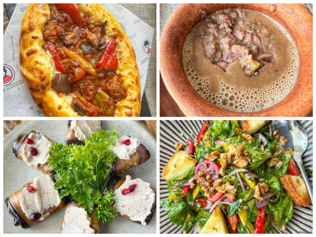 Georgian is undoubtedly one of the world’s powerhouse cuisines that most people have never even heard of. It doesn’t matter what you put in your mouth, it’s incredible. And so vegetarian friendly as well! We chose an eggplant and pepper kachapuri, lobe (bean stew), grilled eggplant/pomegranates stuffed with walnut paste, and a salad with Georgian traditional cheese. OMG!!! Cost for four dishes and two beers was $27. Not bad for a birthday splurge! Of course we also realized we need to make a return trip to Georgia!!🇬🇪