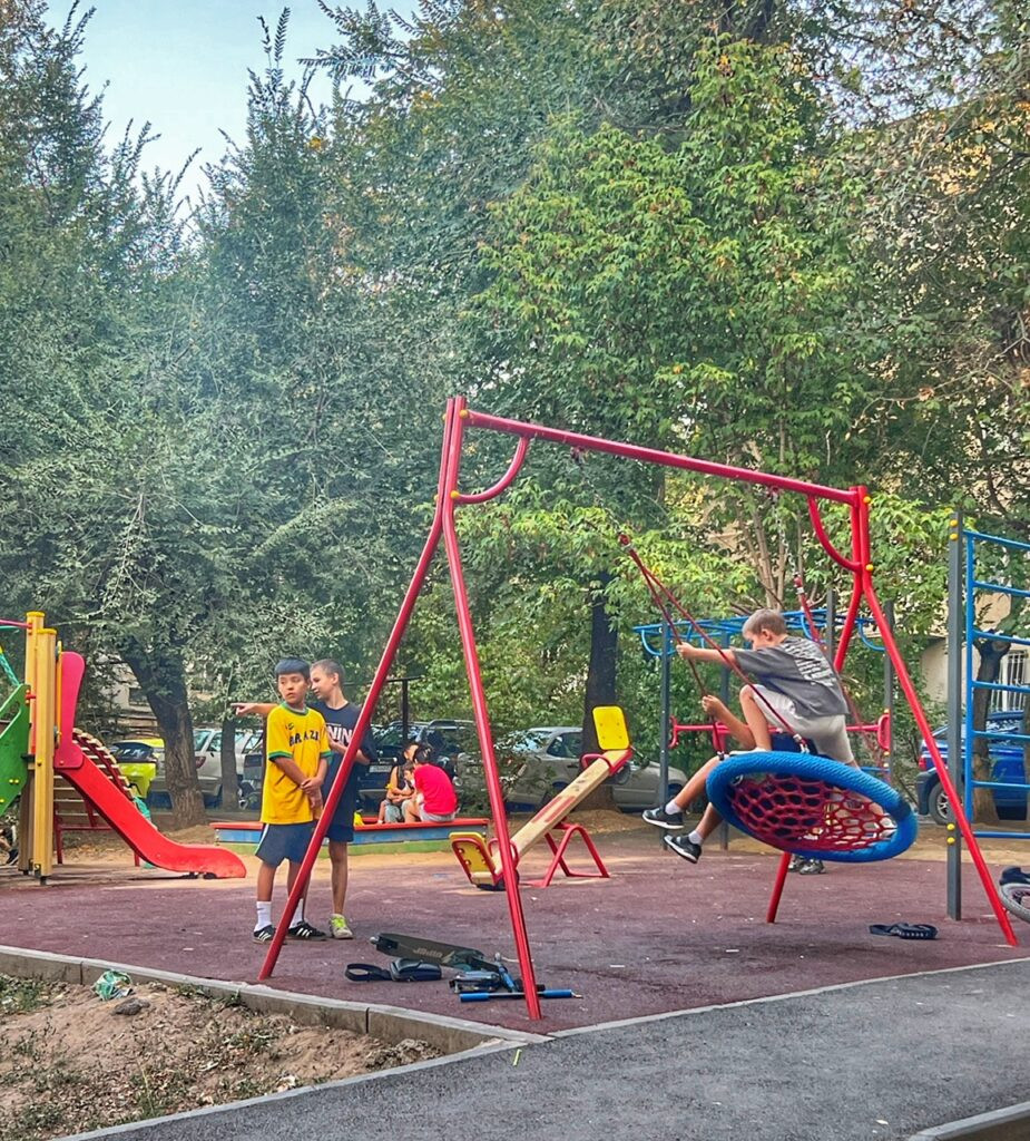 In our neighborhood, where we’d often take nightly walks. The residential blocks, though Soviet, were absolutely lovely compared to ones we’ve seen in other post-Soviet countries. All were connected by delightful tree-covered walking paths, and central squares with playgrounds.
