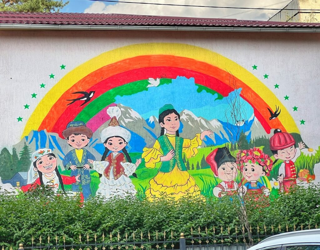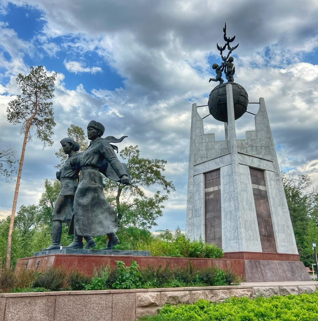 Almaty is practically blanketed with trees and parks any direction you turn which undeniably makes it magical. In the park on Astana Square we found something rare….a statue of two women! This is the Memorial of Aliya Moldagulova and Manshuk Mametova, two young Kazakh women who fought on the front lines, which was quite rare, and died during World War II. They also have some nice Kazakh-inspired street art.