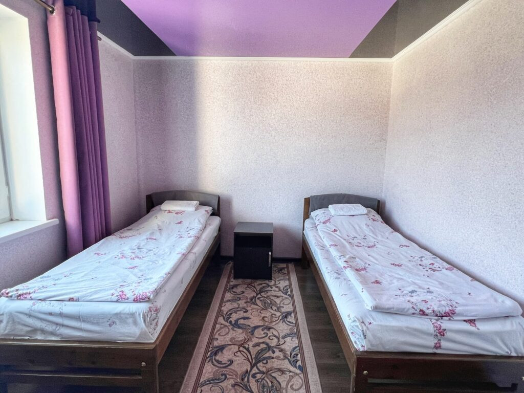 Our purple-plastered room for $22/night had two extra-long beds perfect for Dutchies and Germans…and couples (like us) who have passed our married 10+ years mark. 🤣
