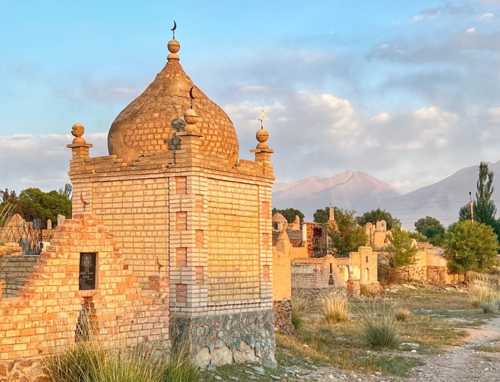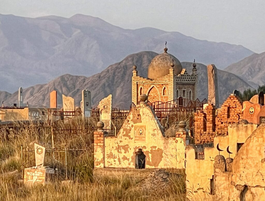 As you journey into Kochkor, tucked into the edge of the mountains, one can bear witness to an exceptional and arresting final resting place for many…a seemingly untouched City of the Departed, known as the Semiz Bel Muslim Cemetery. This miniature Islamic village of elaborate tombs and maze-like pathways is unlike anything we’ve ever seen, and even more captivating, we caught it with an ethereal glow at Golden Hour.