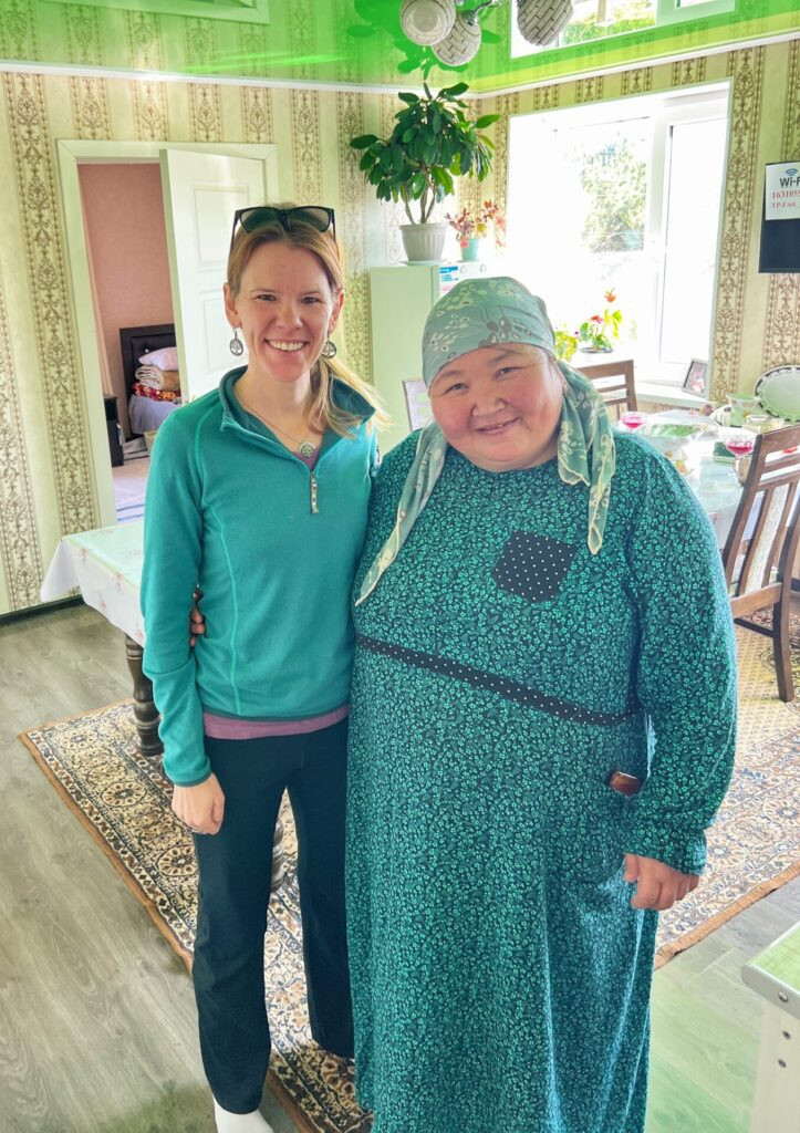 Mandy with Saltanat, our jolly breakfast maker and hostess at Melika Guesthouse.