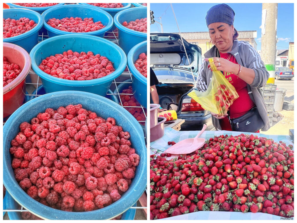 It’s berry season in Kochkor!! Two small bags of raspberries and strawberries for $1 total! 😋