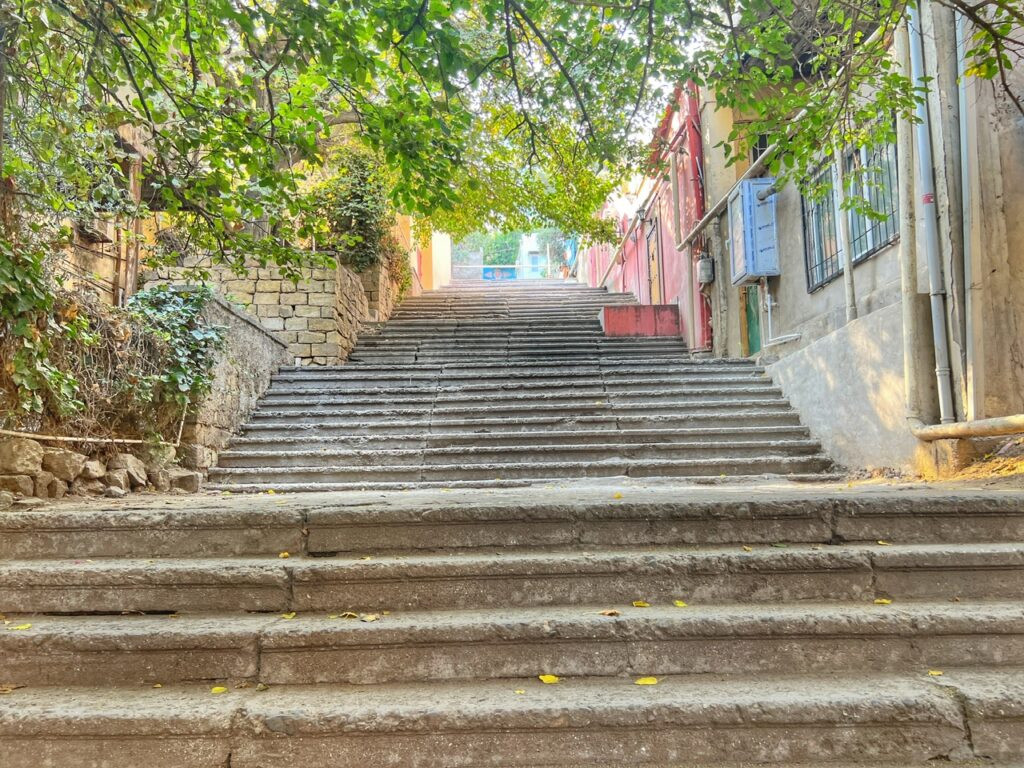 Another shot of Khagani Garden, also called Molokan Garden, which is the older Russian name still used locally. The Molokan community settled nearby after being exiled from Russia for religious reasons. They were peaceful, vegetarian, and teetotalers, so the neighborhood became known for its calm atmosphere, which was quite a contrast to nearby industrial districts.