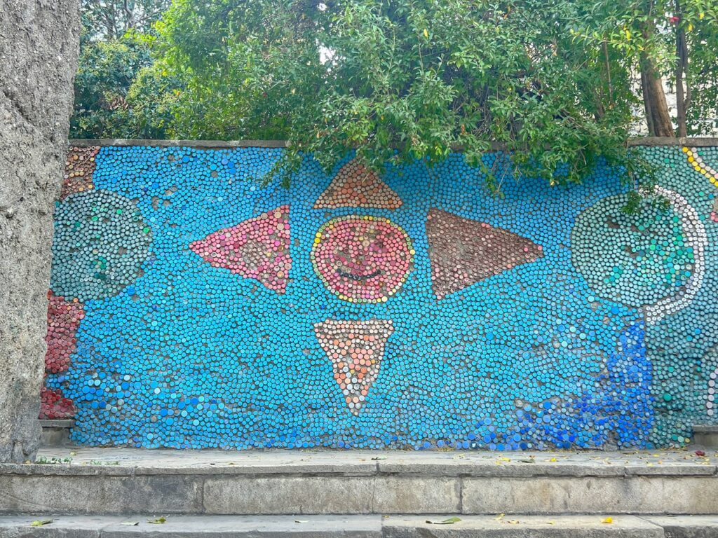 If you get outside the center, you’ll find stairs are a regular part of exploring this city. We love it! A street mural, made of plastic bottle caps