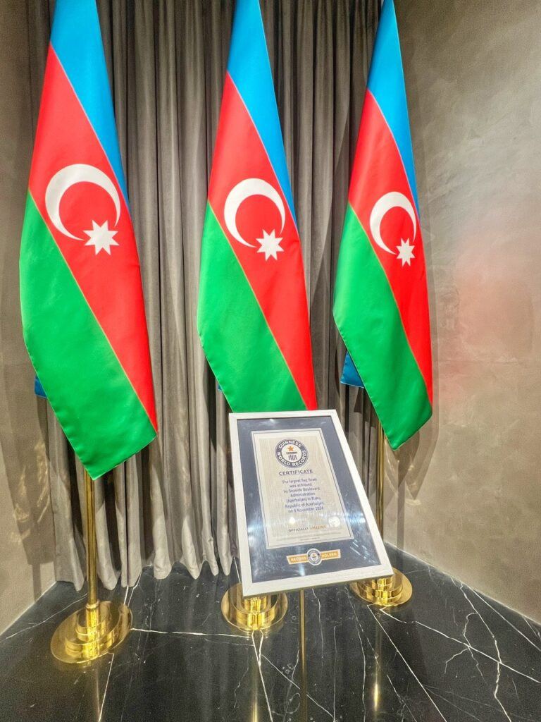 And….all 500 kilograms, aka 1100 pounds, are fluttering in the breeze over the Caspian Sea.