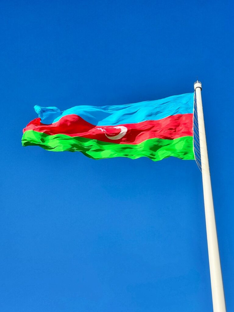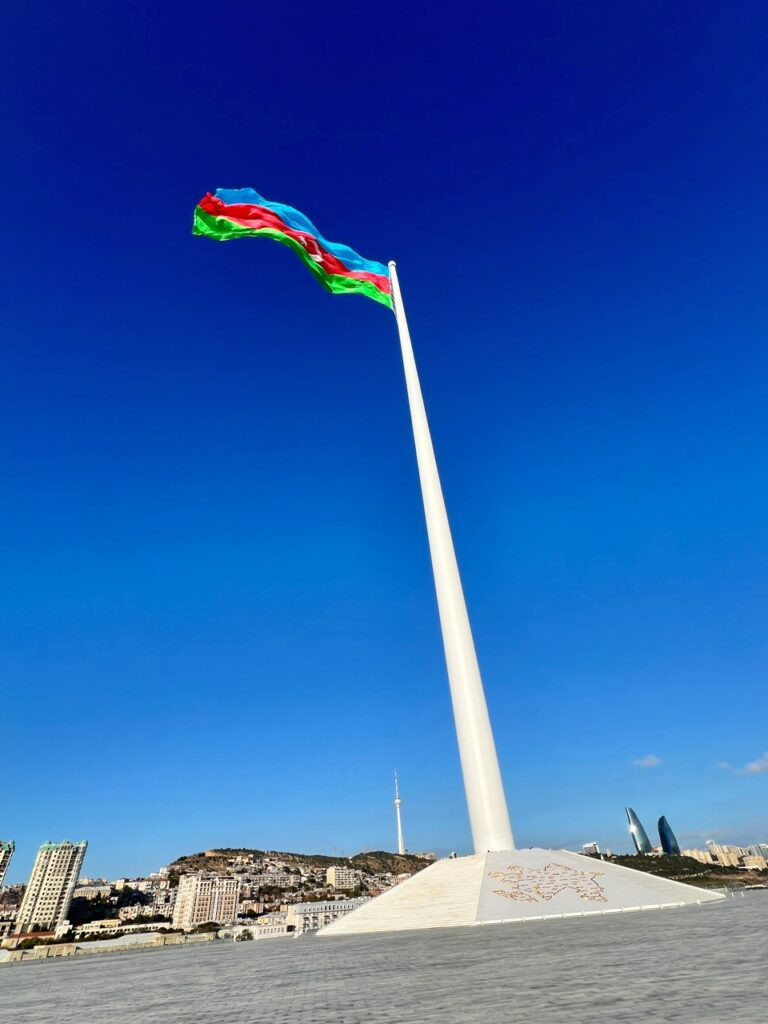 Fortunately it is quite gusty in Azerbaijan’s capital of Baku, which means getting this jumbo jet to billow is a regular possibility. The colors of the flag represent its Turkic roots (blue), its desire for modernity and democracy (red), and its Islamic cultural heritage (green).