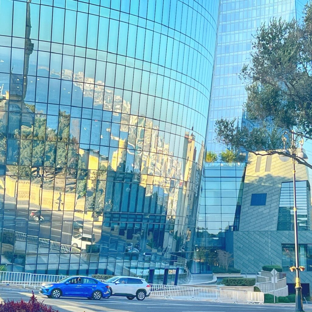…which wildly contrasts the flame towers. Another contrast was the astounding reflection of the sea on the side of it.