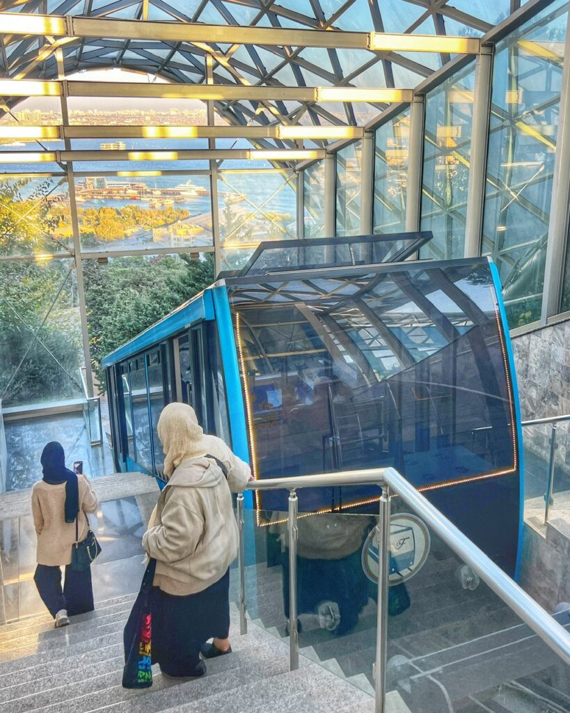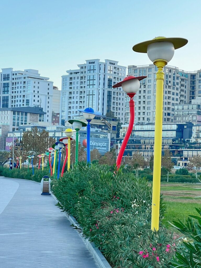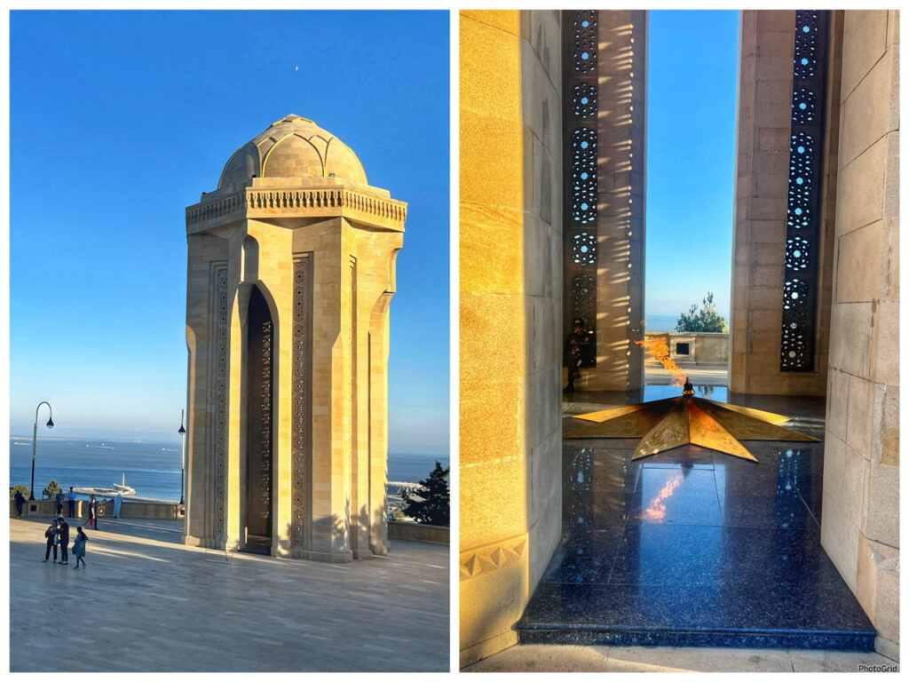 From the terraces of the lofty Highland Park, which you can access by walking or funicular, one can find the Shahidlar, or Martyr’s, Monument. This eternal flame dancing in the wind honors those killed during Black January in January 1990, when Soviet troops entered Baku and killed 150 unarmed civilians protesting for independence. The tombstones of those that died. The event is remembered as a tragic turning point in Azerbaijan’s struggle for independence.