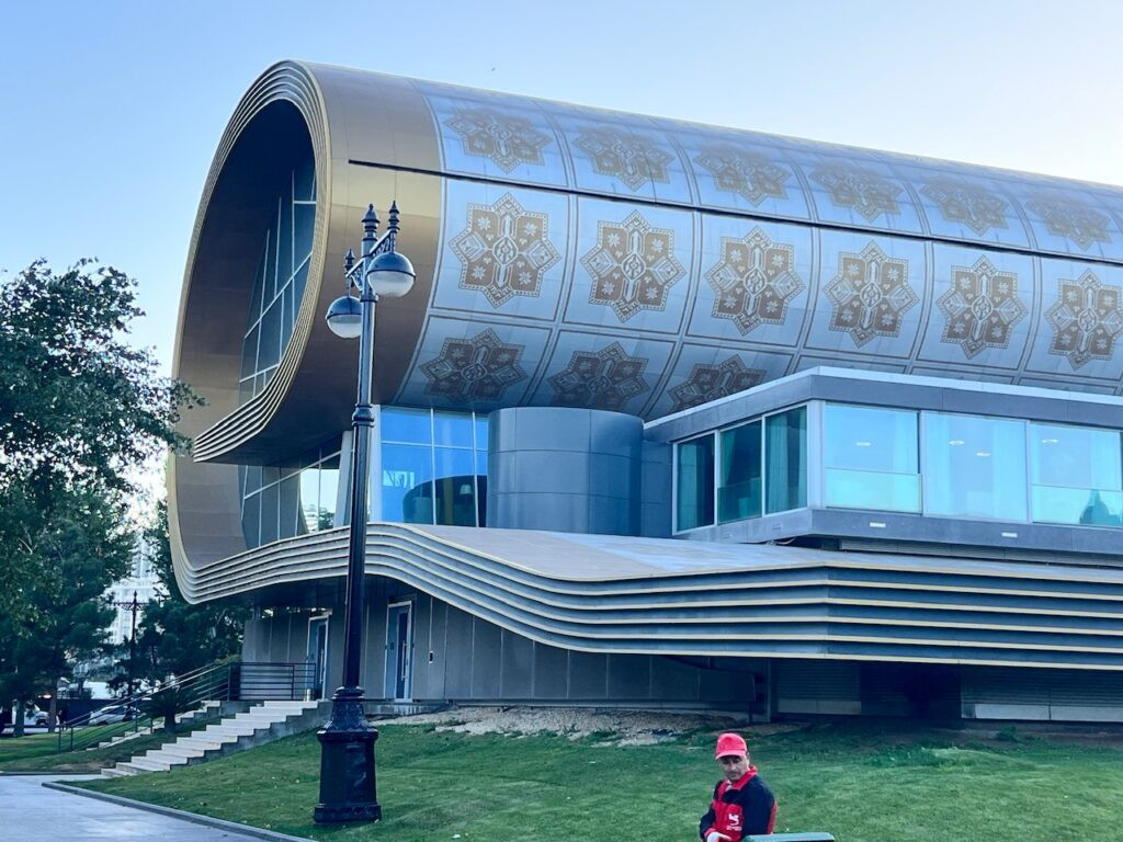 Baku is packed to the brim with modern architecture and one of these wonders can be found in the undulating and fluid exterior of the Heydar Aliyev Center. Designed by Zaha Hadid, it was completed in 2012, and seems to flood contiguously from the ground into walls and roof without a single straight line or angle. SHE designed it to contrast with Baku’s rigid Soviet-era architecture — making it a symbol of post-Soviet transformation and modern national identity. This culture center serves as a museum, which was closed the day we went, exhibition halls, and an auditorium.