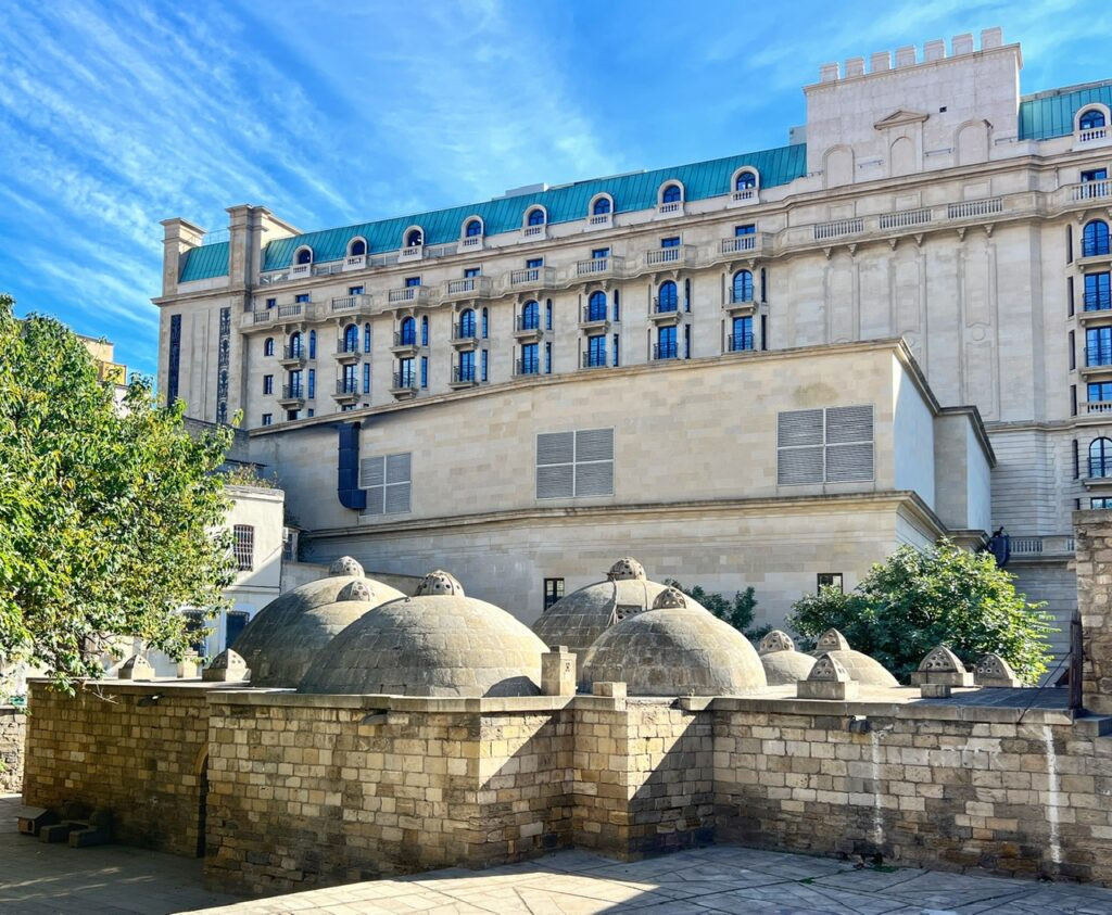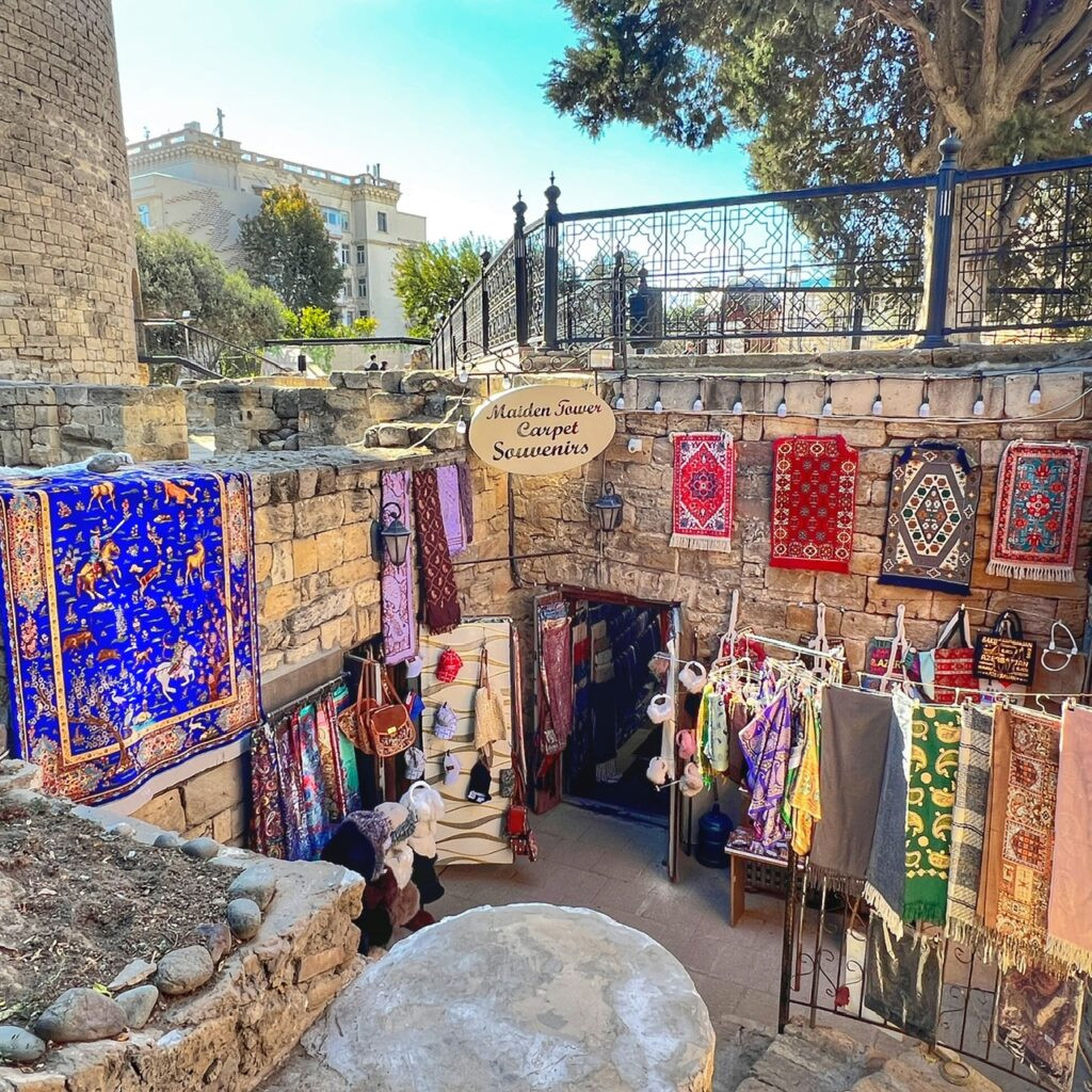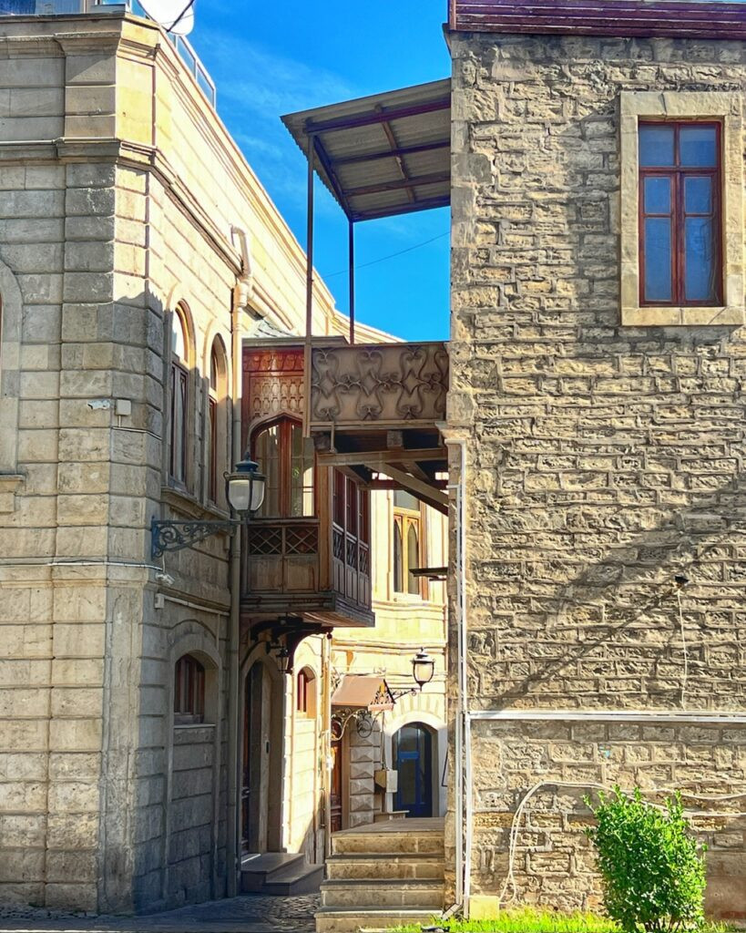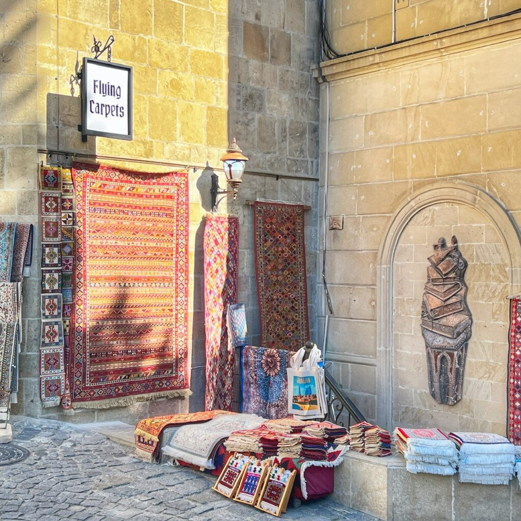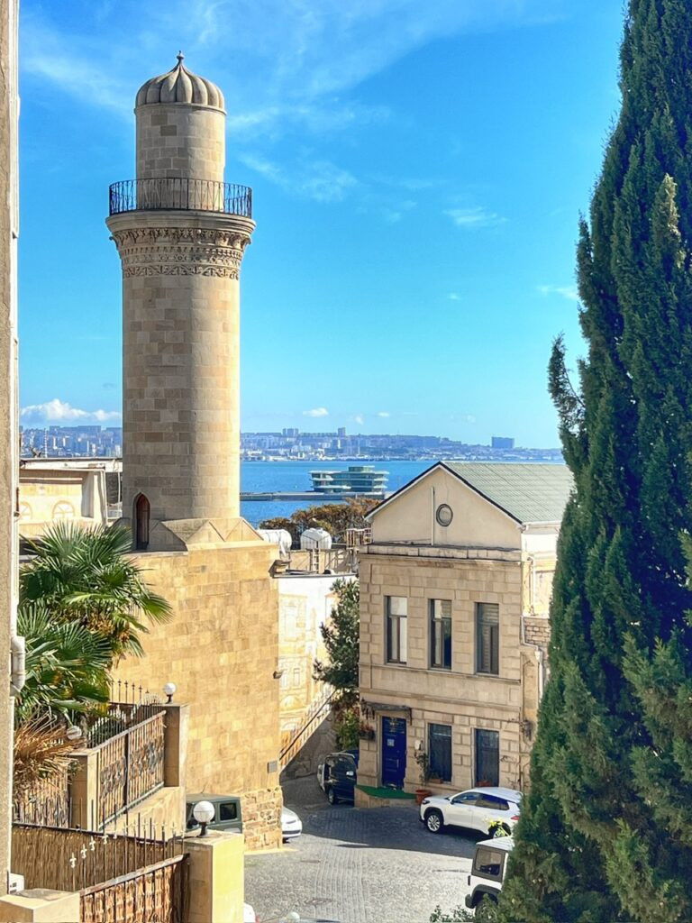 It didn’t take us long to become beguiled by Azerbaijan’s glittering capital perched on the fringe of the Caspian Sea, but especially by its ancient Icherisheher, or Inner City,  which well deservedly achieved its UNESCO status in 2000. Within its fortressed walls and labyrinth of alleys, it is layered with captivating architecture from the Persian and Ottoman Empires and with clear traces of Russian and Islamic influences as well. For us, it was reminiscent of places we’ve visited in the Balkans, as well as Turkiye, Spain, and Malta. With few tourists, idyllically sunny skies, and a mystical sense of wonder, it is a fascinating place to get lost in.