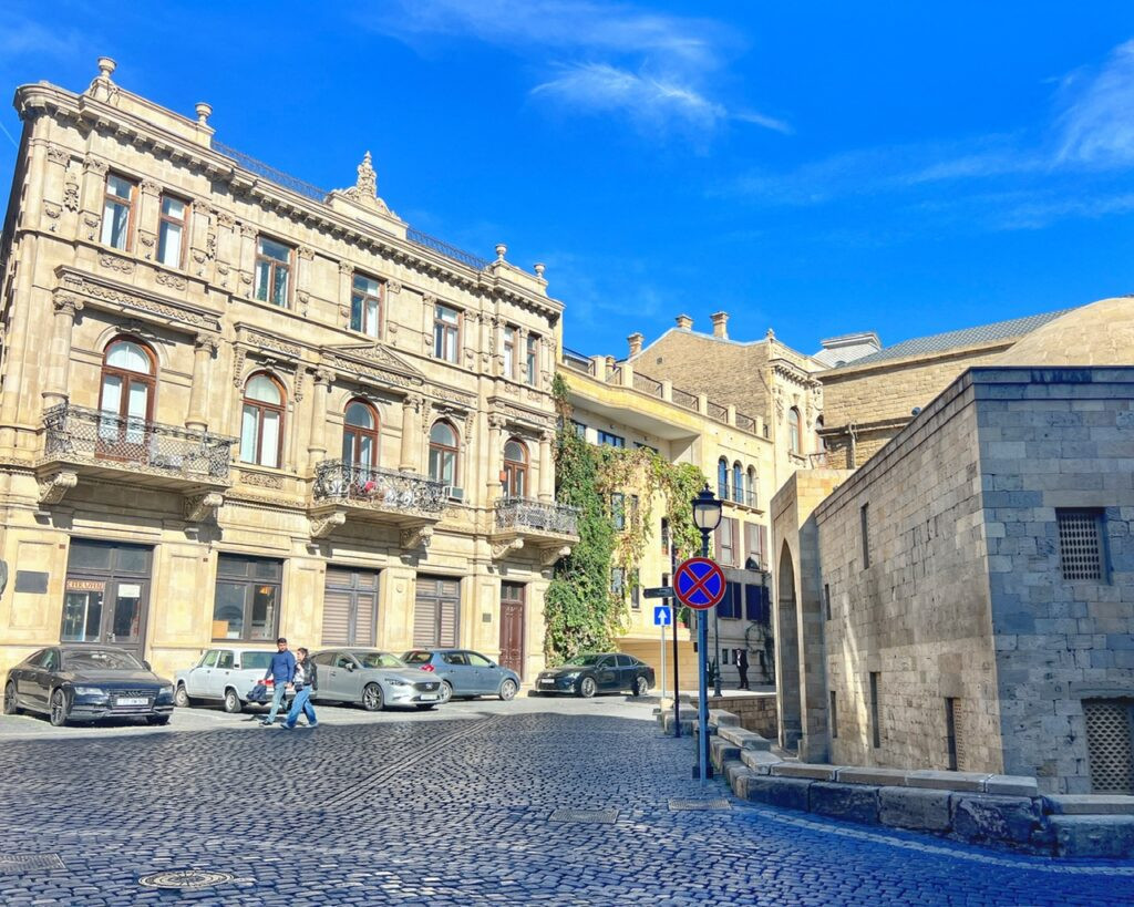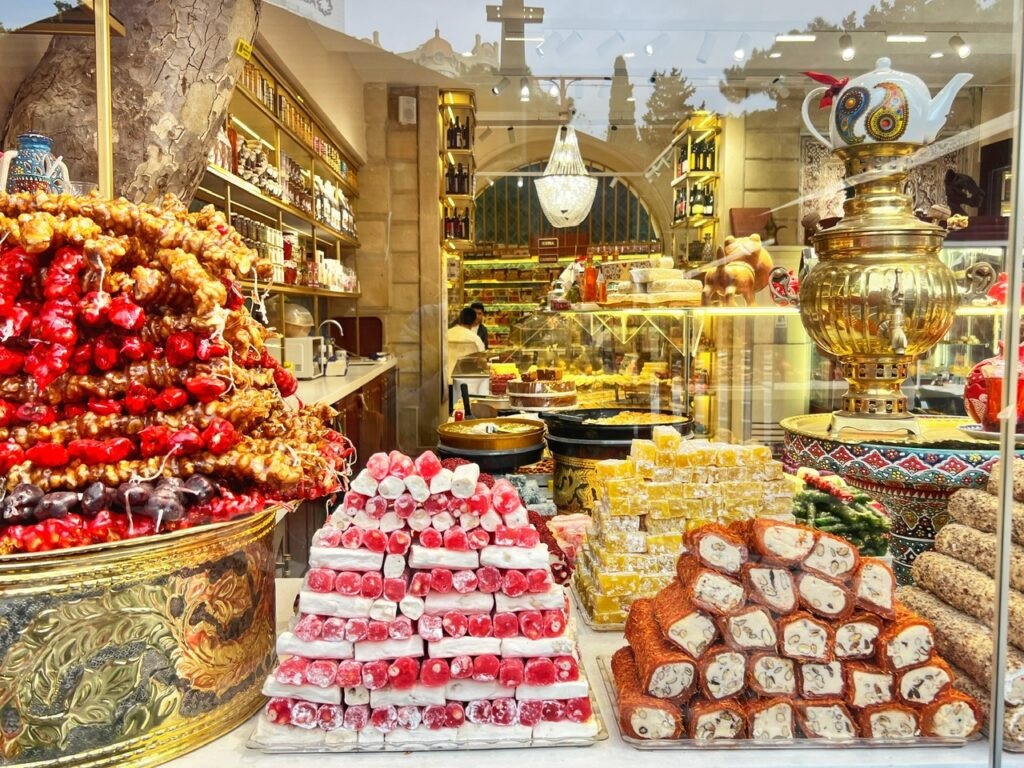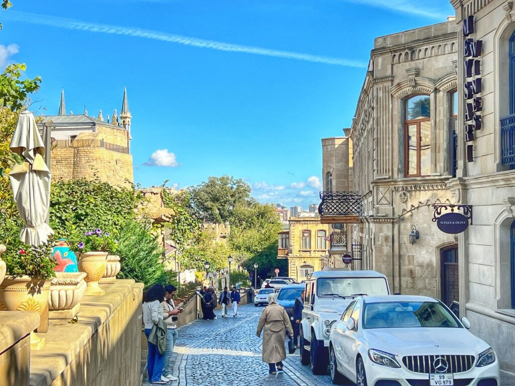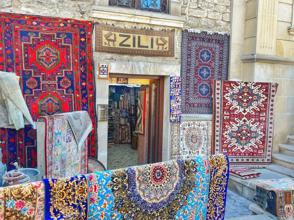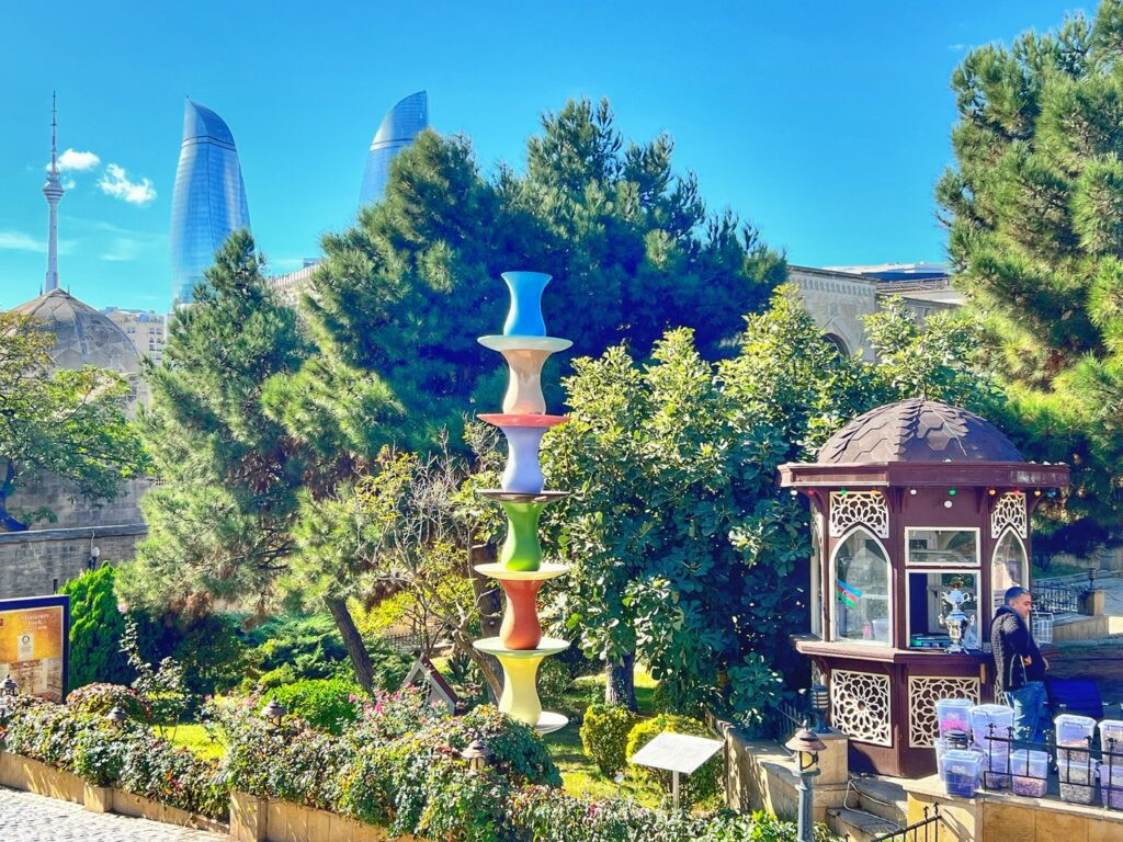 It didn’t take us long to become beguiled by Azerbaijan’s glittering capital perched on the fringe of the Caspian Sea, but especially by its ancient Icherisheher, or Inner City,  which well deservedly achieved its UNESCO status in 2000. Within its fortressed walls and labyrinth of alleys, it is layered with captivating architecture from the Persian and Ottoman Empires and with clear traces of Russian and Islamic influences as well. For us, it was reminiscent of places we’ve visited in the Balkans, as well as Turkiye, Spain, and Malta. With few tourists, idyllically sunny skies, and a mystical sense of wonder, it is a fascinating place to get lost in.