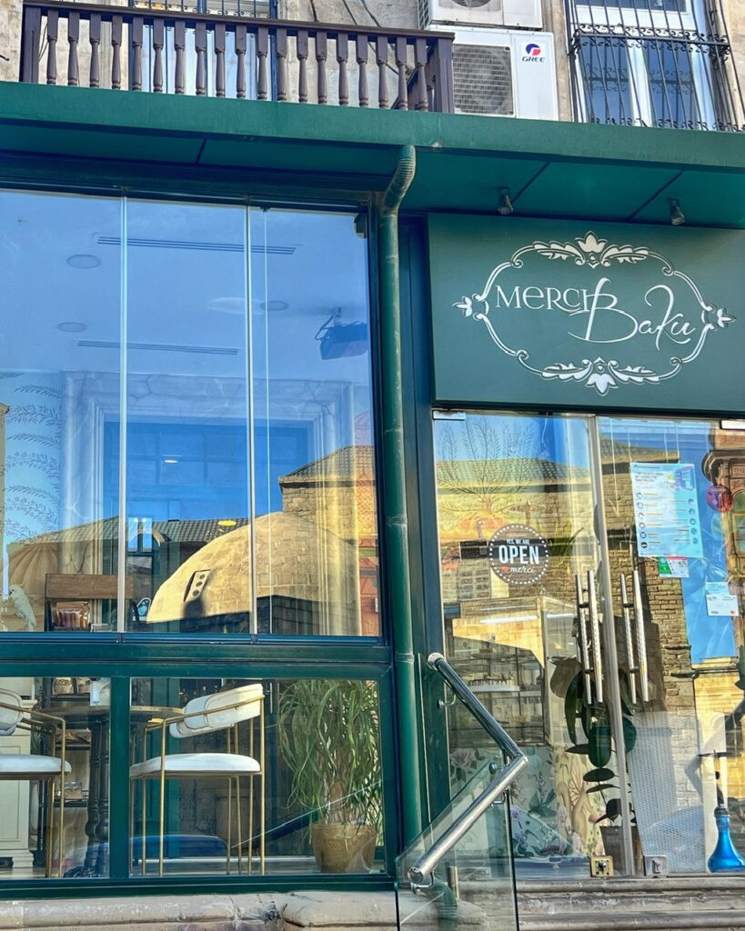 The old bathhouse, Kasum-Bek, which now sits behind the most hoity toity hotel of them all (Four Seasons) is crowned with a roof that looks like…well, you decide. According to a Google review, it used to be called “The Sweet Bathhouse,” because they served sweets and tea alongside your soak. It did not specify what kind of “sweets” it meant.