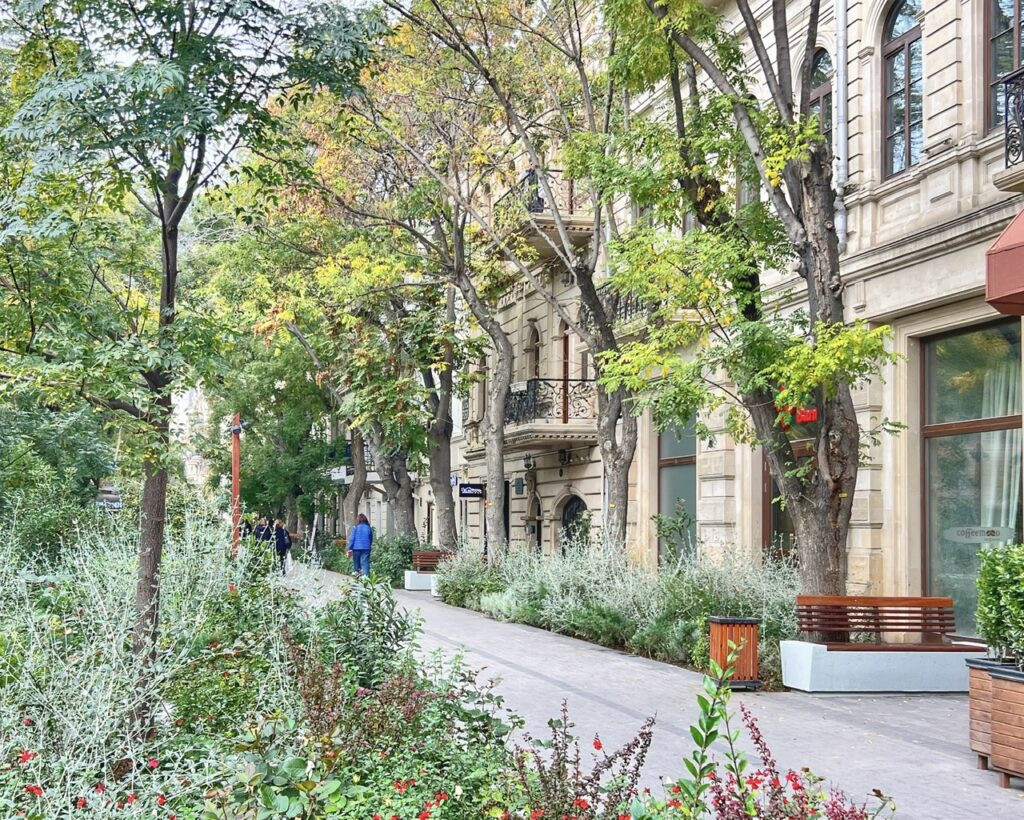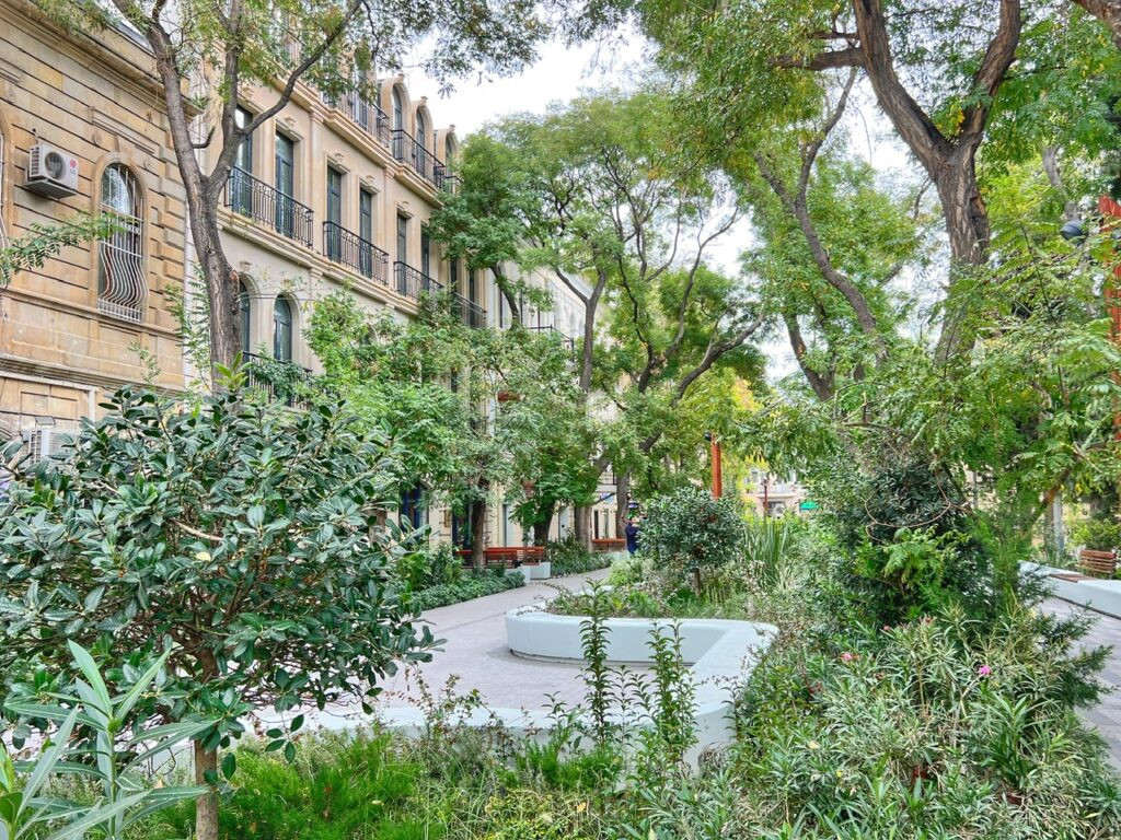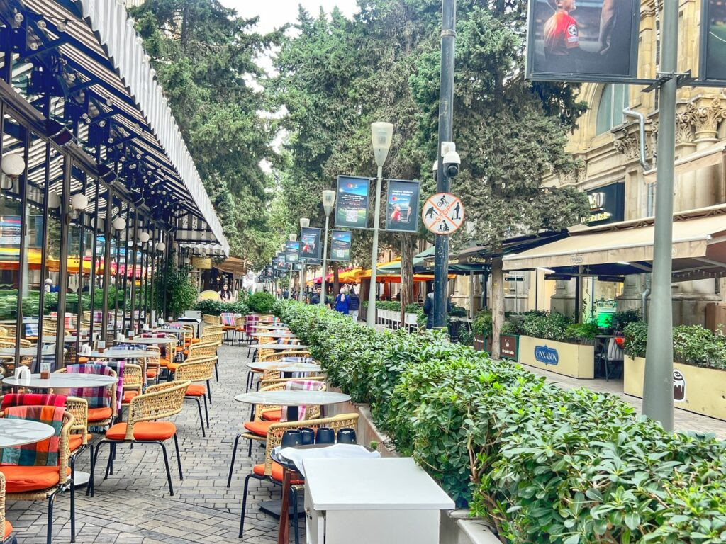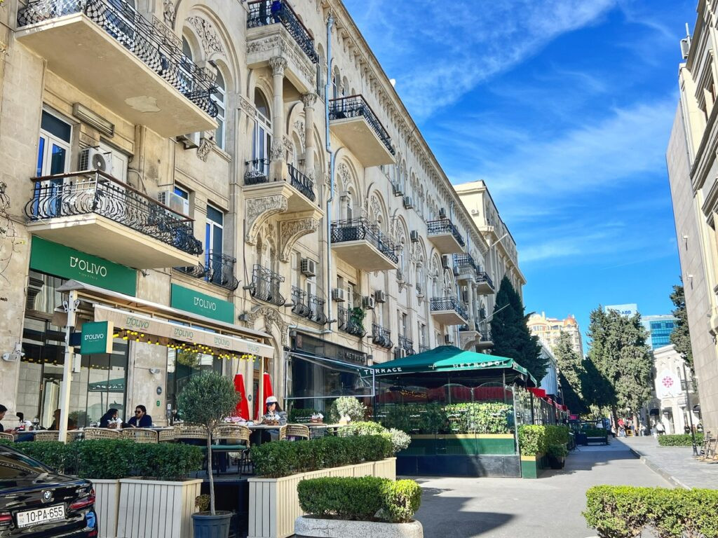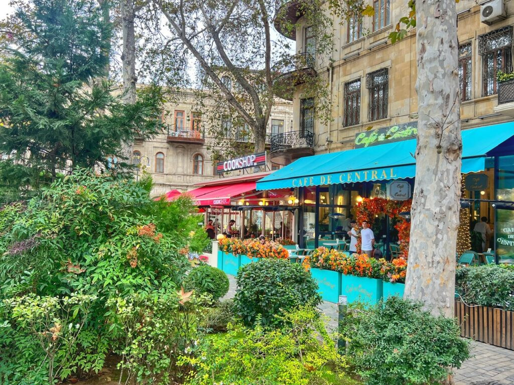 This leafy and compact heart of this area is Khagani Garden, which floods oxygen into the city with tranquility and elegance. On the fringes of the park, you’ll likely feel you’ve been transported to Paris or Vienna, including a multitude of Al fresco-style seating options lining the sidewalks, most offering blankets or heat lamps.