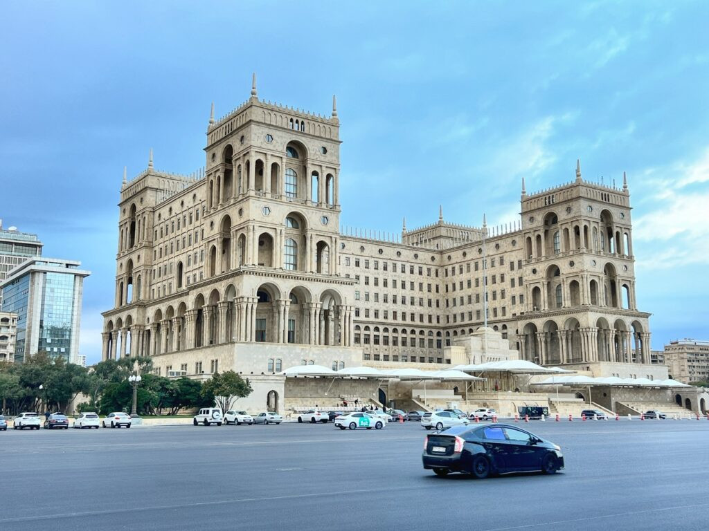The imposing Baku Government House is a major administrative seat for the Azerbaijani government. The building style, from 1936, blends Stalinist monumental architecture with neoclassical and baroque accents.