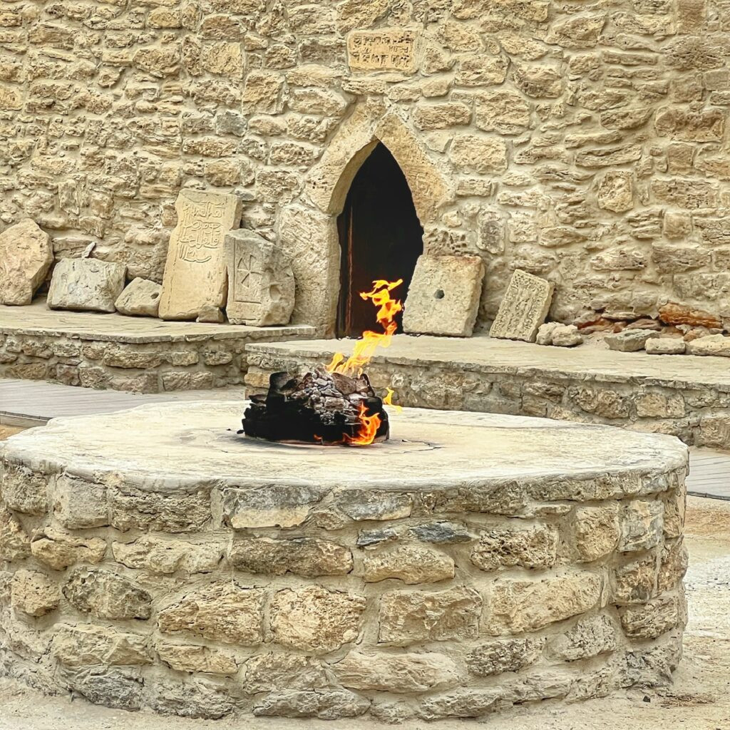 The word “Atashgah” means “house of fire” in Azerbaijani. Until the 19th century, natural gas leaked through the rock around the temple. This caused the so-called “burning earth” phenomenon.