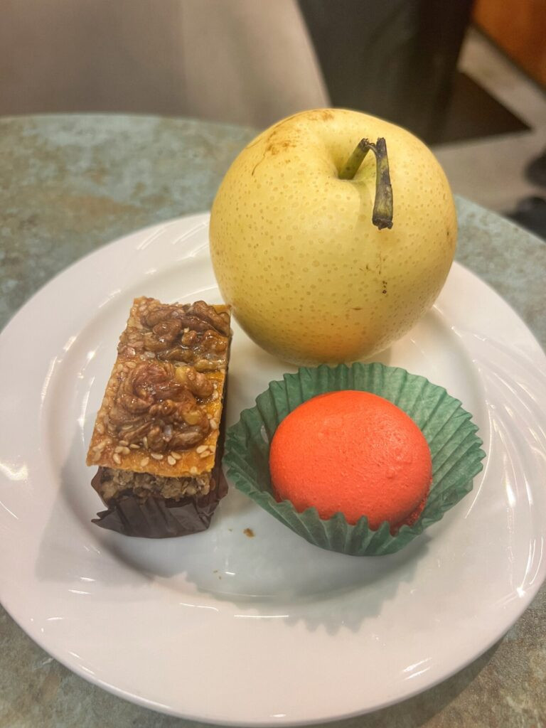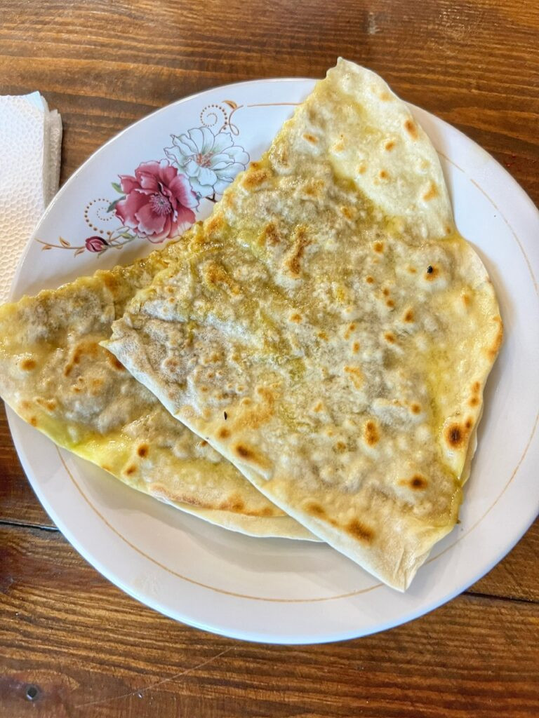 We also had a buttery gutab ($1.75) which is a a stuffed, thin flatbread — a sort of cross between a crepe and a turnover — traditionally cooked on a domed griddle called a saj. Inside was cheese, curry and pumpkin. Mmmmmm. But also glad we’re not eating this food regularly. 😂