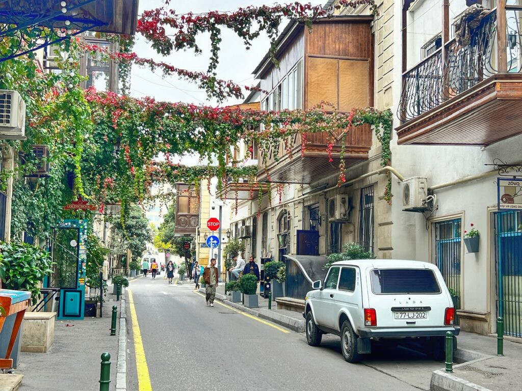 Within its maze of passages, Icherisheher hosts a multitude of wine bars, coffee shops, and picturesque restaurants. Unsurprisingly, it caters to tourists in the center and is much more expensive, so we chose to have our lunch on the cheapskate side of the wall. Most of the streets also only allow pedestrians or bikes to scoot under their striking shebeke balconies.