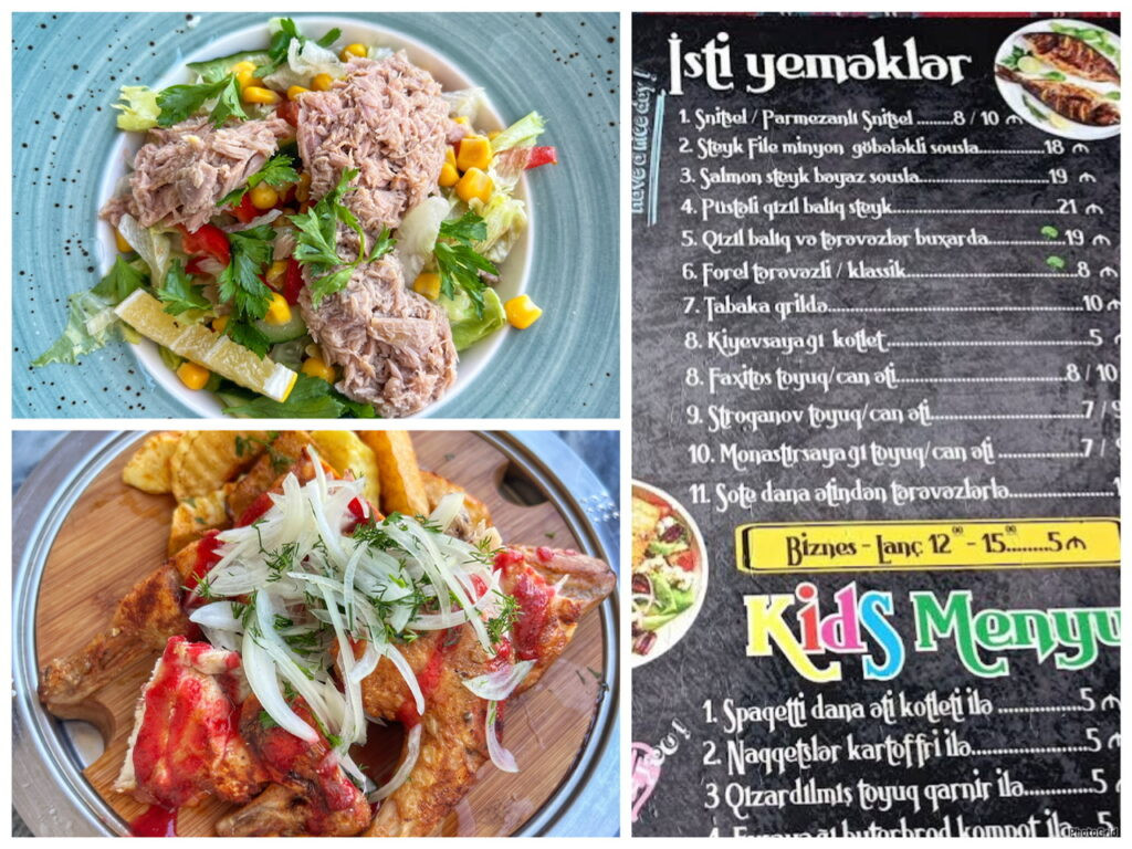 A restaurant named, “Come in Club” was near our place so we decided to do just that for our first lunch. It had a tremendous view over the sea making it exceptionally inviting. Through the menu, it was here we first learned that Azerbaijani looks, and sounds, a lot like Turkish. Both of them are Turkic languages from the Oghuz branch so their grammar, core vocabulary and pronunciation are closely related, somewhat like Spanish and Portuguese.