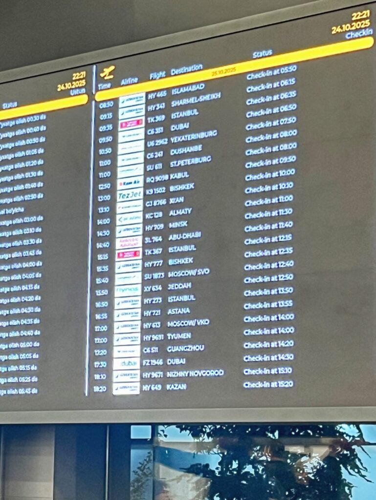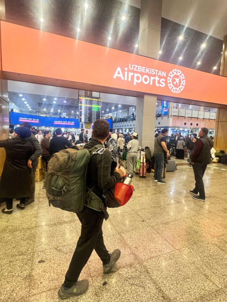 The flight itself was smooth and soared us over the barren land of desert we’d already commuted by train to get back to Tashkent from Khiva. Of course we looked at just flying from Khiva, but that was prohibitively expensive. We arrived to the airport nearly 5.5 hours early, at our normal 10 p.m. bedtime, convinced by Chat GPT, the migration office, and other travel bloggers we were going to get stopped by the border officials, and wanting to still have time to go to the lounge afterward.
