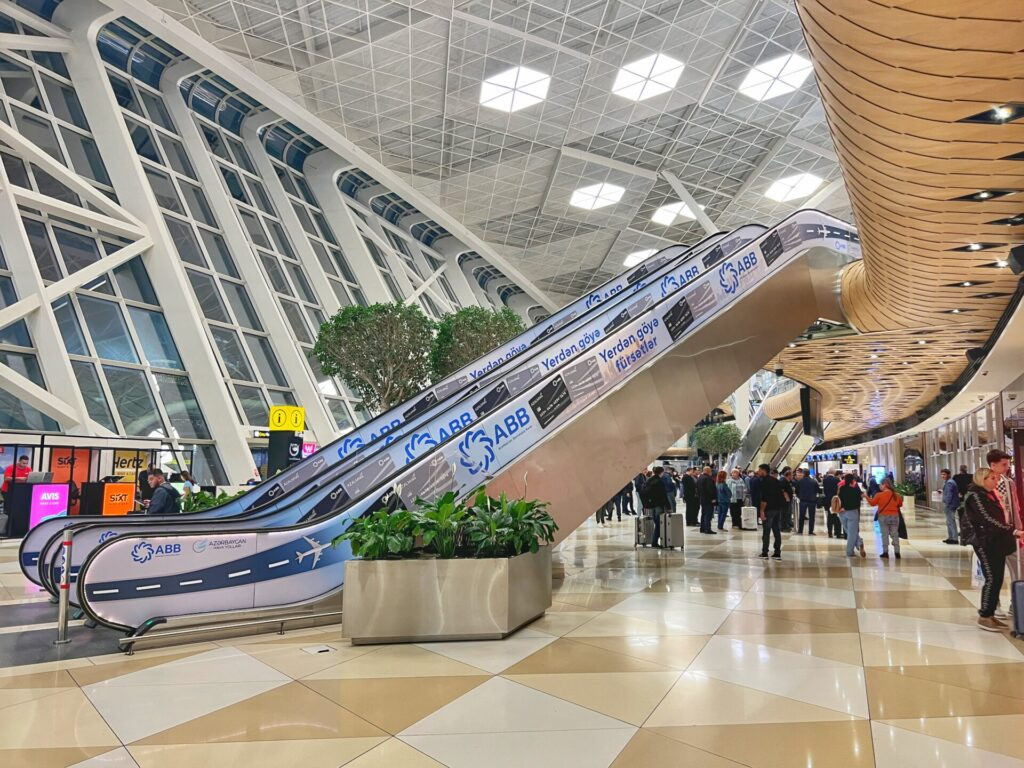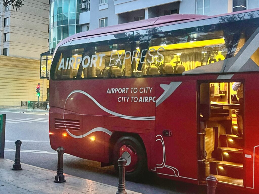 …to give us enough fuel to wander through the fancy airport, take out some Azerbaijani Manat at the ATM, buy a BakuKart at one of the machines…and work our way to the quite nice “H1 Airport Express” bus, which would shuttle us 30 minutes to the center of Baku for the bargain price of $.77/each when a Bolt taxi was going at about $12.